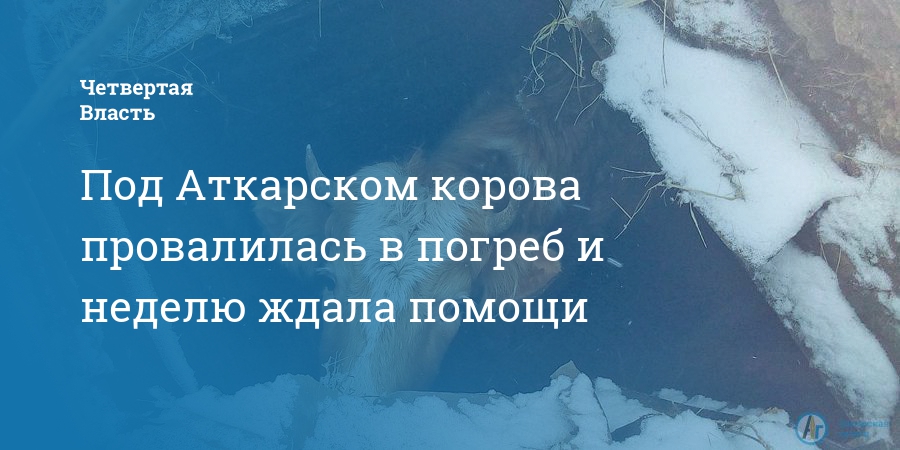 Сегодня, 28 января, в Аткарском районе Саратовской области прошла операция по спасению коровы Марты, которая провалилась в погреб. Как сообщает «Аткарская газета» со ссылкой на аварийно-спасательное формирование службы спасения, животное пробыло в двухметровой яме около недели.