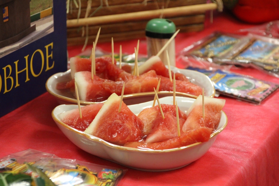 Возле одного из стендов производителей из Ровного Стрелюхину предложили попробовать моченый арбуз. Поселок претендует на место одной из перспективных точек внутреннего туризма и называет себя «арбузной столицей Саратовской области». Он отказался, сказав, что не голоден.