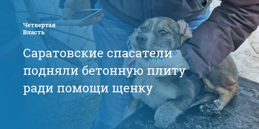 Саратовские спасатели подняли бетонную плиту ради помощи щенку