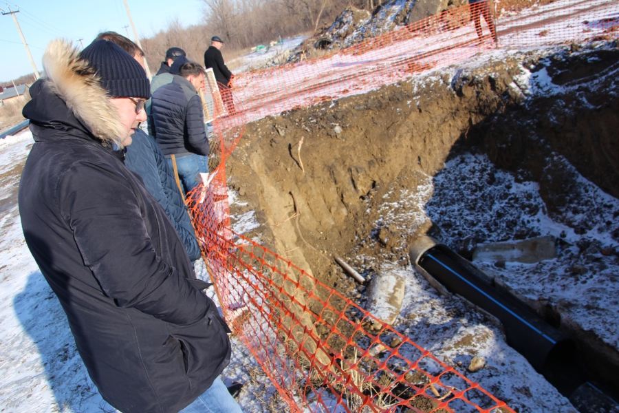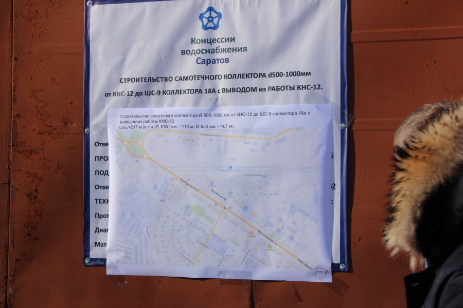 После этого делегация направилась осматривать ход строительства магистральногого водопровода, который протянется от ВНС «Вольская» до Московского шоссе. Здесь коммуникациями не занимались с 1974 года, и сейчас водопровод имеет высокий износ (аварийность составляет около 30 повреждений в год).