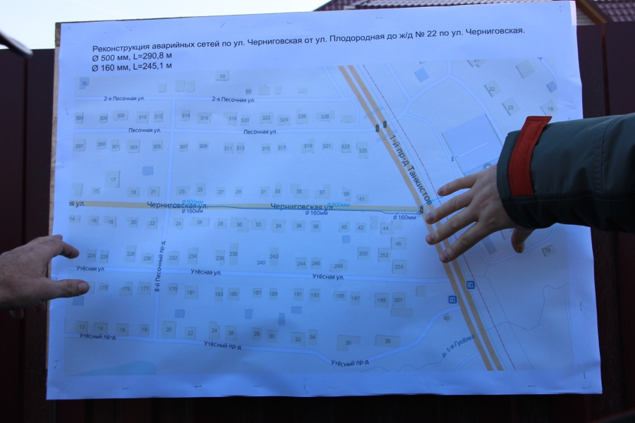 Последним объектом в рейде стал участок водопровода по улице Черниговской от улицы Плодородной до Черниговской. Здесь трубами также не занимались с 1971 года, их износ приблизился к абсолютному. После завершения строительства все абоненты на данном участке будут переключены на новый водовод. По состоянию на сегодняшний день проложено 166 м трубопровода.