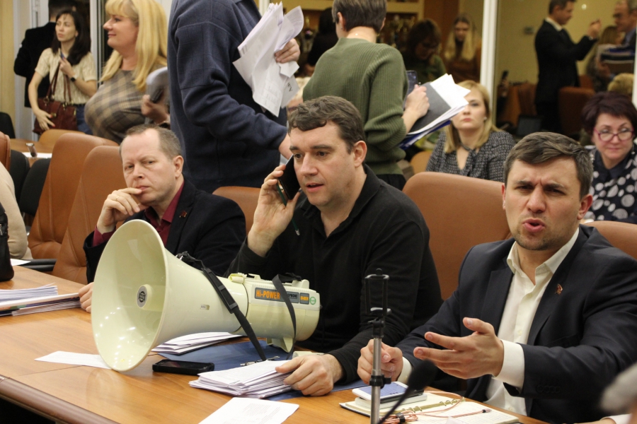 В этот момент коммунисты начали задавать Антонову множество уточняющих вопросов, явно затягивая заседание. Один из них включил сирену на мегафоне, стараясь заглушить голоса выступающих. Причина их недовольства – отклоненные поправки к регламенту работы думы.