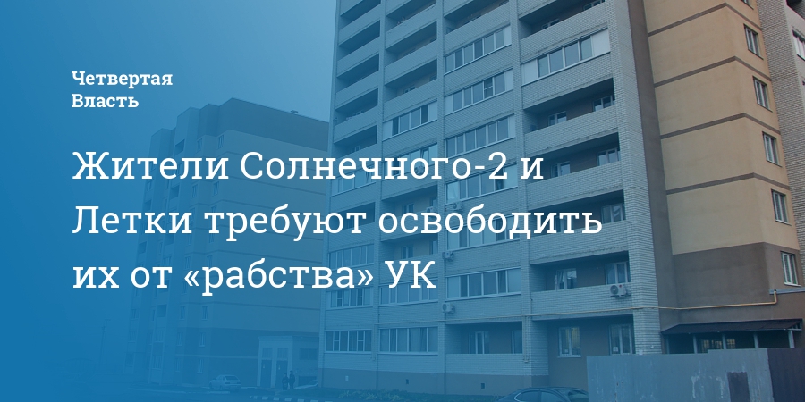 В письме, присланном в редакцию, заявляется, что жителей, образно говоря, взяли в рабство. Управляющие компании («Летка», «Содружество», «Уютный дом») якобы имеют общих руководителей, которые не собираются уходить из этих микрорайонов, несмотря на многочисленные жалобы.