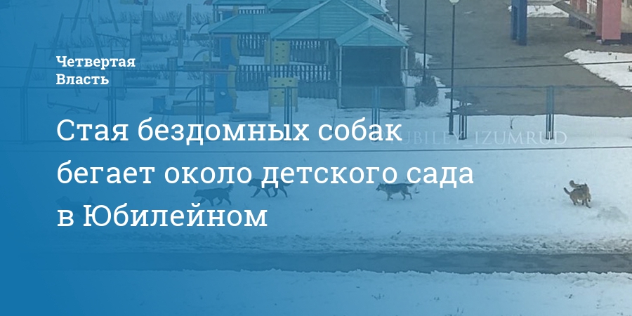Стая бездомных собак бегает около детского сада в Юбилейном