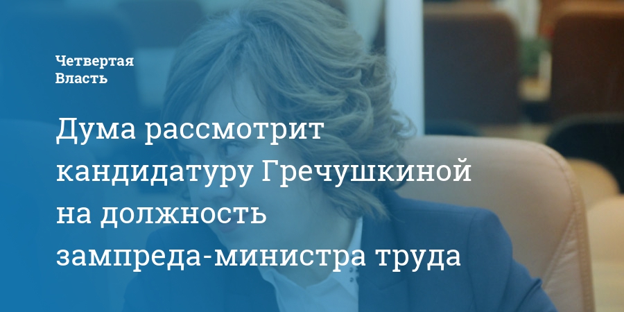 Дума рассмотрит кандидатуру Гречушкиной на должность зампреда-министра труда