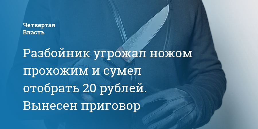 Разбойник угрожал ножом прохожим и сумел отобрать 20 рублей. Вынесен приговор