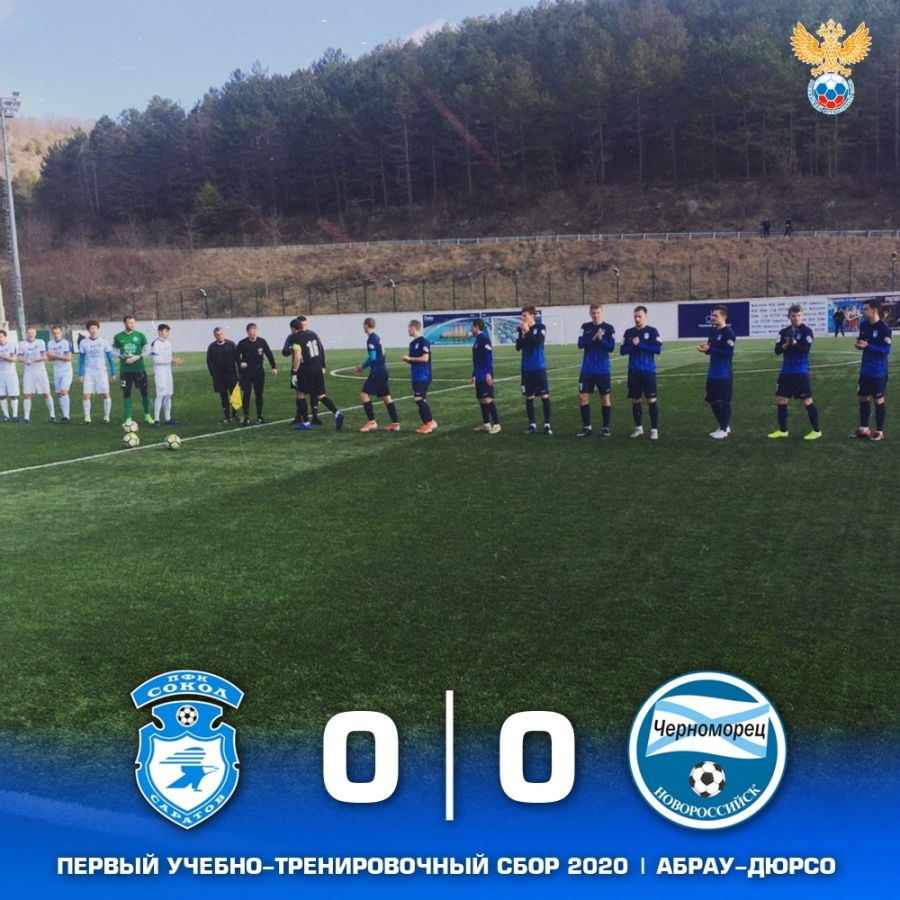 Футболисты саратовского «Сокола» в Абрау-Дюрсо сыграли безголевую ничью с «Черноморцем» (Новороссийск).