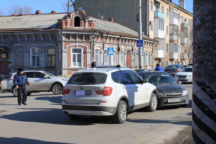 В эти минуты в центре Саратова массовая авария серьезно затрудняет проезд транспорта по перекрестку Челюскинцев и Октябрьской.