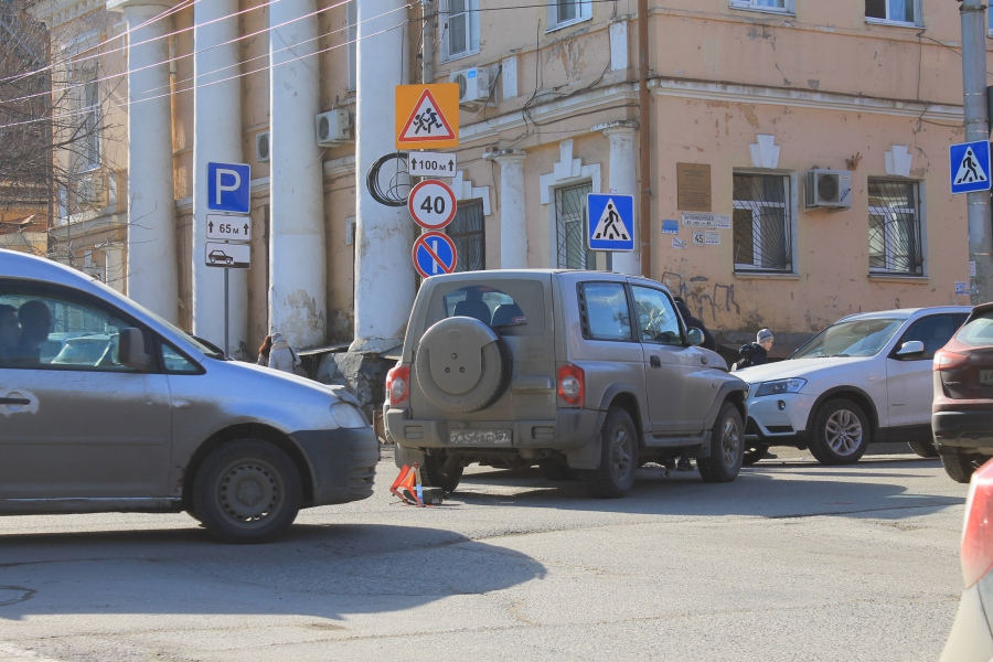 На пересечении этих улиц столкнулись три машины: кроссовер «БМВ Х3», внедорожник «Тагаз Тайгер» и легковушка «Лада Гранта». После удара машины таким образом расположились на перекрестке, что полностью блокировали две полосы (в сторону Волги по Челюскинцев и по Октябрьской в сторону Московской) и полполосы Челюскинцев в сторону Радищева. На месте возникли пробки. Так, другие участники движения, движущиеся со стороны Радищева, чтобы не выезжать на «встречку» и не создавать еще больший затор, вынуждены объезжать ДТП по тротуару.