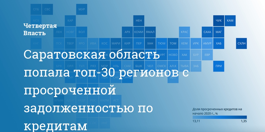 В 2020 году Саратовская область названа в списке регионов с наиболее высокой долей просроченных кредитов. Это следует из данных, опубликованных экспертами РИА Новости.