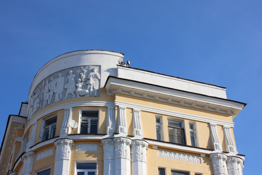 На Волжской дом с барельефом стал опасным для пешеходов