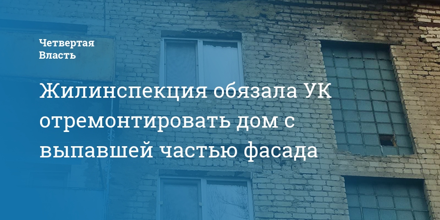 Жилинспекция обязала УК отремонтировать дом с выпавшей частью фасада