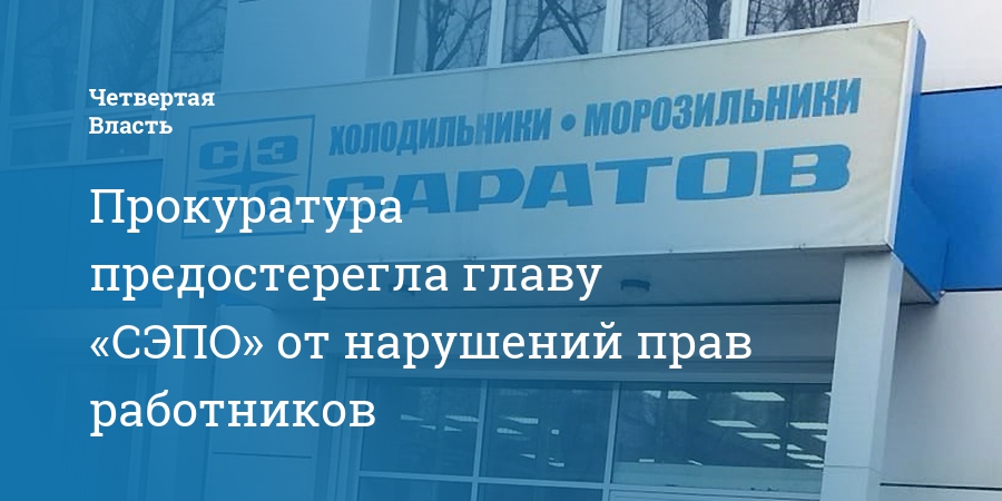 Прокуратура Ленинского района Саратова вынесла предостережение директору ООО «СЭПО-ЗЭМ» Евгению Резнику. В документе надзорный орган призывает не допустить нарушений трудовых прав работников.