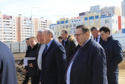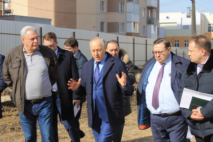 В настоящее время здесь ведутся подготовительные работы (ограждение территории, вынос осей свай и др). Губернатор осмотрел объект вместе с зампредами Романом Бусаргиным и Сергеем Наумовым. О ходе работ доложил руководитель подрядной организации Леонид Писной.