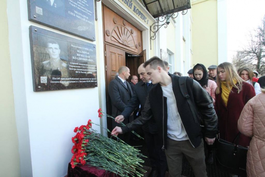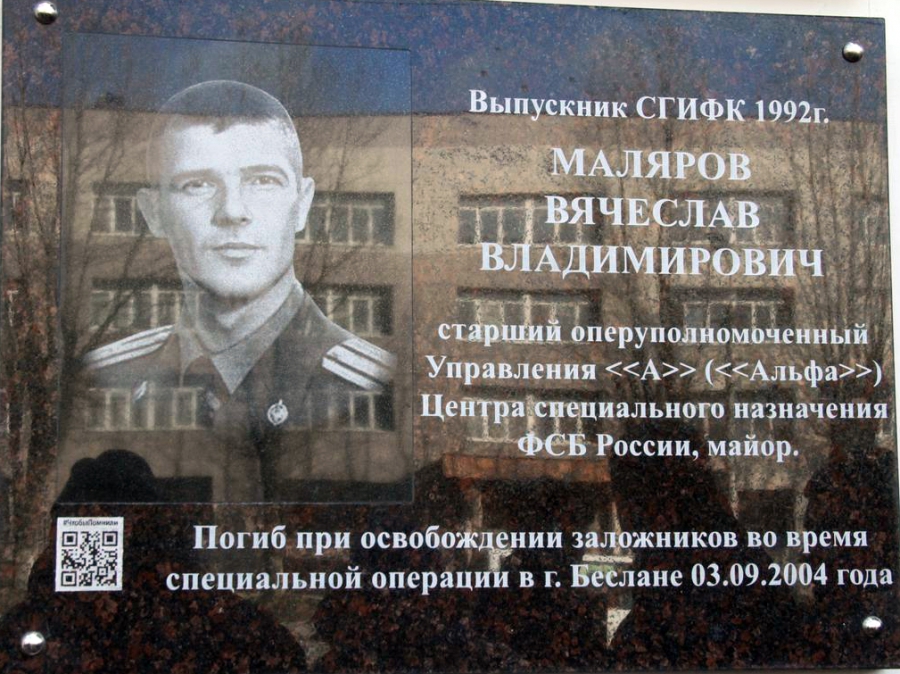 Оперуполномоченный группы «Альфа» центра специального назначения ФСБ России майор Вячеслав Маляров - герой войны в Афганистане, двух чеченских войн, освобождения заложников театрального центра на Дубровке и школы в Беслане. 3 сентября 2004 года во время захвата боевиками бесланской школы №1 первыми на помощь заложникам пришли спецназовцы. Рискуя жизнью, Вячеслав вынес из-под огня и оказал первую медицинскую помощь тяжело раненому товарищу. Во время зачистки одного из помещений он перекрыл сектор обстрела троим боевикам, двоих противников смертельно ранил. В тот же день Маляров погиб. Ему было 35 лет.