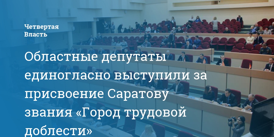 Саратовские депутаты единогласно выступили за присвоение Саратову почетного звания «Город трудовой доблести». Это произошло сегодня, 12 марта, во время внеочередного заседания Саратовской областной думы.