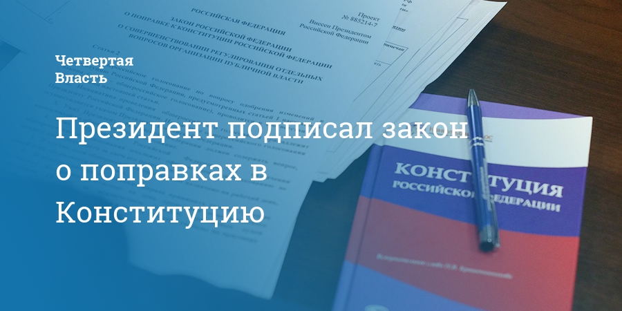 Президент Владимир Путин подписал закон о поправках в Конституцию РФ. Такой документ появился сегодня на портале общественно-правовой информации.