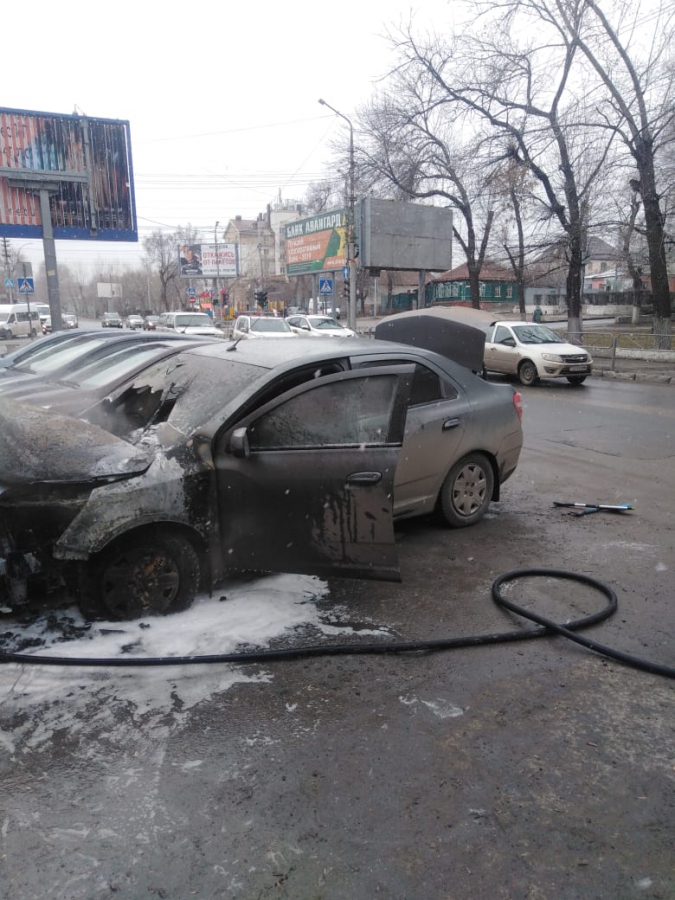 Происшествие случилось на Большой Горной в районе дома №157Б. Предварительная причина, из-за которой внезапно вспыхнула машина «Шевроле Кобальт» - проблемы с проводкой.