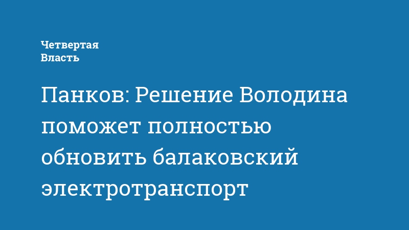 Панков: Решение Володина поможет полностью обновить балаковский электротранспорт