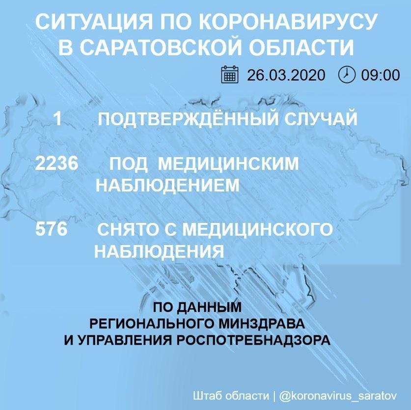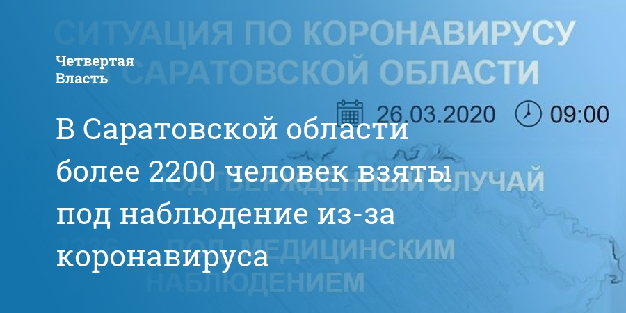 На территории Саратовской области под медицинским наблюдением находятся 2236 человек в связи с подозрениями на заражение новым коронавирусом. Такие данные на 9.00 26 марта сообщает оперативный штаб области.