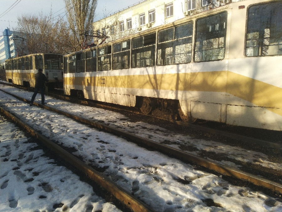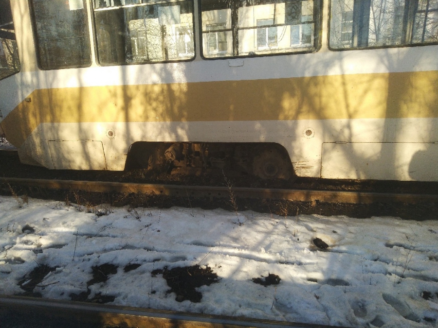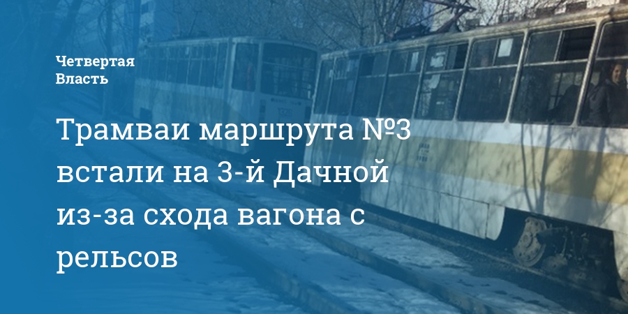 Трамваи маршрута №3 встали на 3-й Дачной из-за схода вагона с рельсов