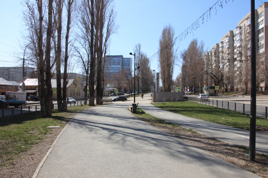 Парки и скверы всё еще привлекают некоторых саратовцев. Формально посещать скверы и парки нельзя, но де факто кто-то там гуляет с собакой, кто-то с ребенком, кто-то просто так. Такие бульвары, как Рахова, к примеру, все еще остаются одной из главных пешеходных артерий, хоть порядком и обескровленной.