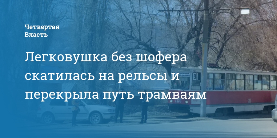 Легковушка без шофера скатилась на рельсы и перекрыла путь трамваям