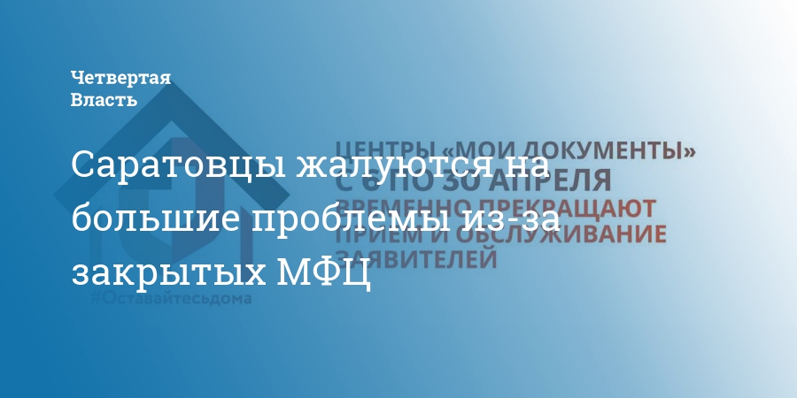 В период с 30 марта по 4 апреля саратовские МФЦ временно прекратили прием заявителей в связи с указом президента России Владимира Путина «Об объявлении в Российской Федерации нерабочих дней». Однако из-за продления нерабочего режима до 30 апреля офисы многофункциональных центров для клиентов по-прежнему закрыты. Это стало большой проблемой для горожан, привыкших к работе МФЦ. Возникли сложности у людей, оформляющих документы, например «зависли» сделки по купле-продаже недвижимости.