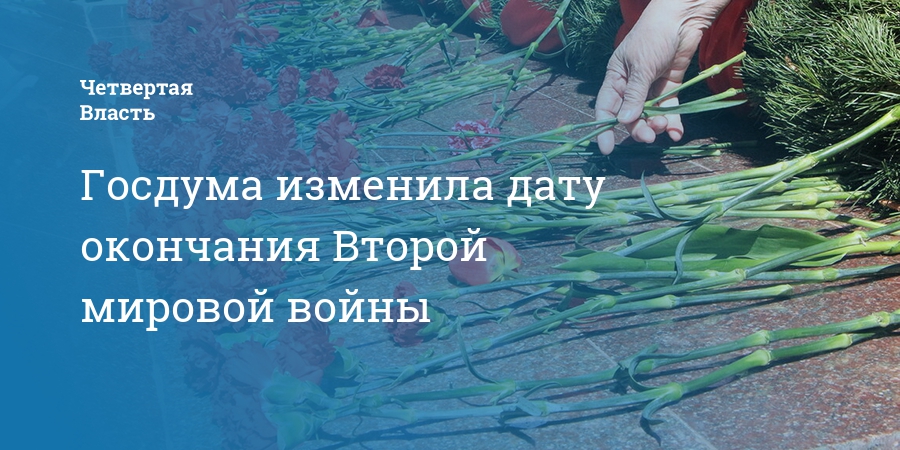 Депутаты Госдумы в третьем, окончательном чтении приняли закон, по которому изменяется дата окончания Второй мировой войны. Согласно принятому решению, она закончилась не 2 сентября 1945 года, а 3 сентября.