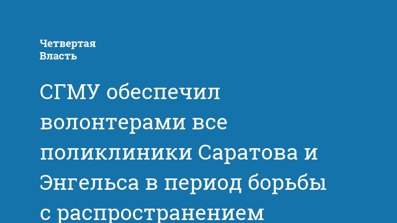 Благодаря активной работе волонтерского центра Саратовского государственного медицинского университета им. В. И. Разумовского все поликлиники Саратова и Энгельса получили «усиление» – необходимое медучреждениям количество добровольцев. Десятки студентов-медиков пришли на помощь врачам в период распространения новой коронавирусной инфекции COVID-19.