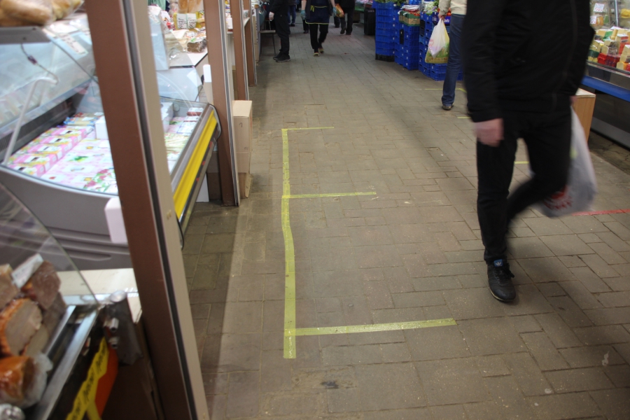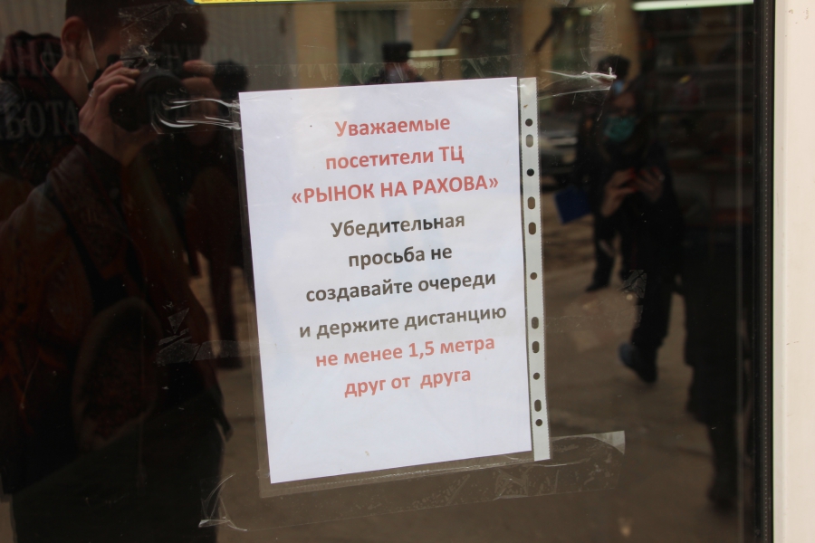 Первой точкой стал рынок «Универсальный» на улице Рахова. Сотрудники полиции обратились к нескольким торговцам с указанием, чтобы те попросили своих покупателей соблюдать безопасное расстояние, а также наклеили указательную разметку. Большинство продавцов с пониманием отнеслись к предостережениям полицейских и начали просить своих покупателей разойтись подальше.