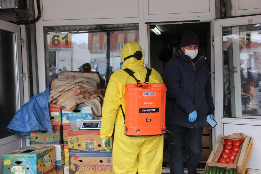 На плодоовощном рынке «Привоз» с приездом проверяющих органов прозвучали сирены, по громкоговорителю продавцам настоятельно рекомендовали «каждые два часа протирать рабочие места и носить маски с перчатками». По возникшему оживлению среди продавцов стало ясно, что слышат они обращение по громкоговорителю впервые.