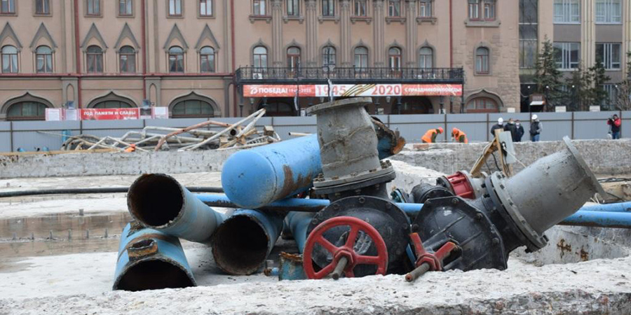 По словам рабочих, в настоящий момент проведен полный демонтаж конструкций, ведется подготовка к нанесению гранитной облицовки, а также к установке гидроизоляции и бетонным работам.