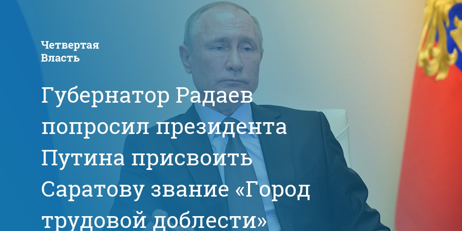 В адрес президента РФ, председателя Российского оргкомитета «Победа» Владимира Путина направлено ходатайство о присвоении городу Саратову почетного звания «Город трудовой доблести». Документ был подписан Губернатором Валерием Радаевым.
