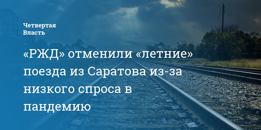 Компания «РЖД» отменила 76 поездов, дополнительно назначенных на летний сезон 2020 года, часть которых отправляются из Саратова. Как пояснили в компании, причиной этого стало значительное сокращение спроса на поездки на фоне неблагоприятной эпидемиологической обстановки по коронавирусу.