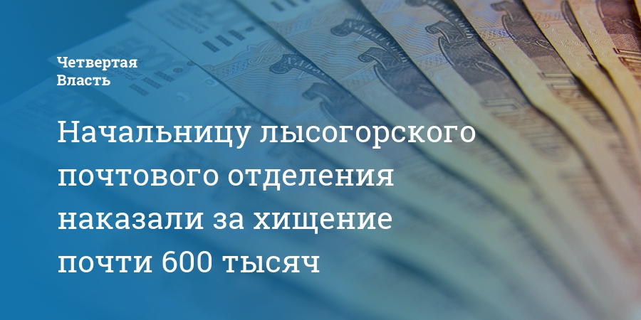 Начальницу лысогорского почтового отделения наказали за хищение почти 600 тысяч