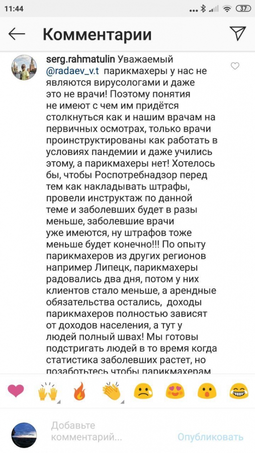 «Хотелось, чтобы Роспотребнадзор, прежде чем накладывать штрафы на них, разъяснил им, как защитить себя и клиентов от инфекции», - пишет один из пользователей сети.
