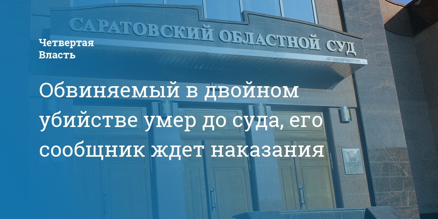 В Саратовском областном суде рассмотрят дело в отношении 44-летнего мужчины, обвиняемого в двойном убийстве и краже. Как сообщили в прокуратуре области, его предполагаемый сообщник умер, не дожив до суда.