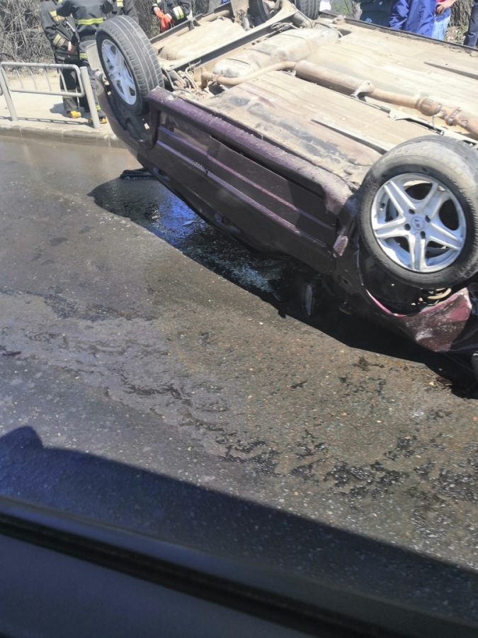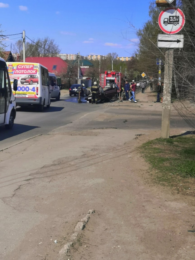 По словам автора поста Татьяны Московской, лежащую на крышу машину она наблюдала около 13.20. На фотографиях видно, что транспорт лежит на крыше, у него помимо этого сильно повреждена передняя часть.
