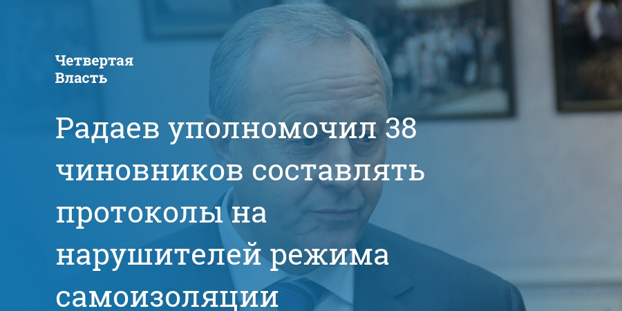 Радаев уполномочил 38 чиновников составлять протоколы на нарушителей режима самоизоляции