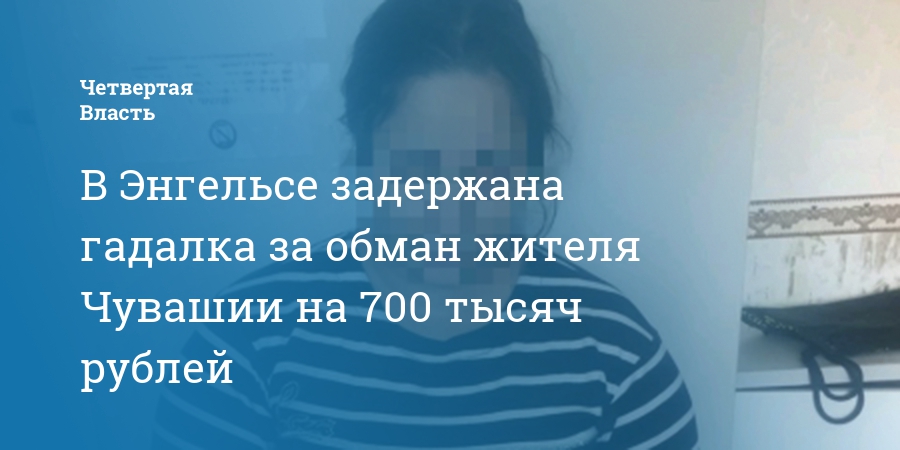 В Энгельсе Саратовской области задержали 23-летнюю гражданку, которую подозревают в хищении более 700 тысяч рублей под видом гадалки. Операцию по поимке проводили сотрудники полиции из республики Чувашия.