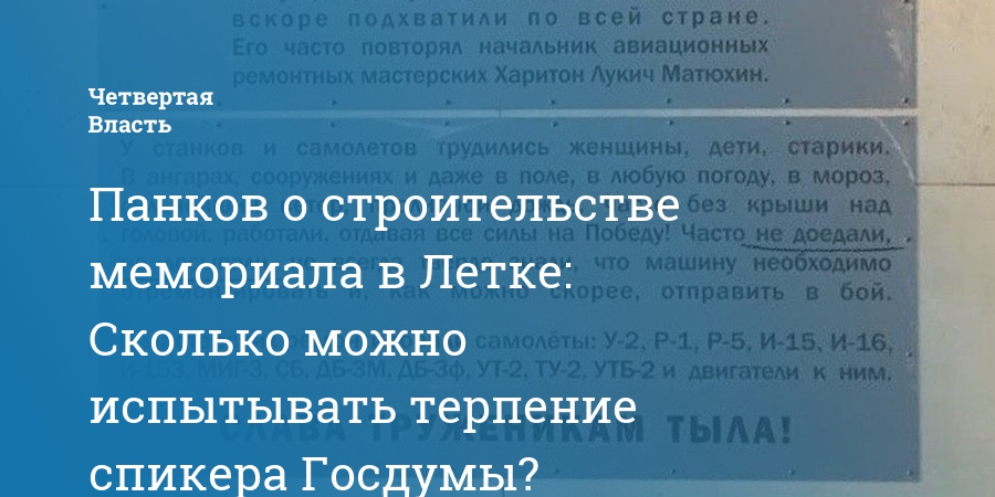 Панков о строительстве мемориала в Летке: Сколько можно испытывать терпение спикера Госдумы?
