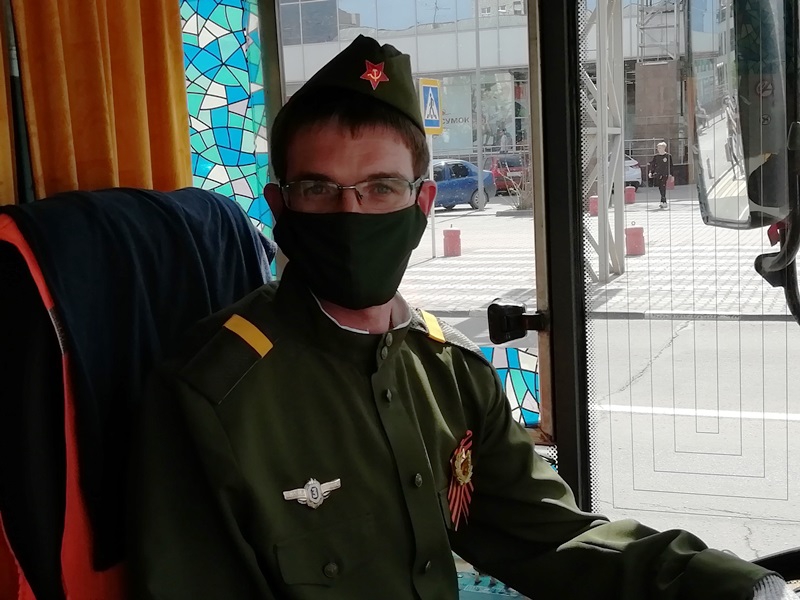 Транспорт движется по маршруту №8. Узнать его горожане смогут благодаря символике праздника. Для пассажиров звучат песни военных лет, а кондуктор и водитель облачены в военную форму.