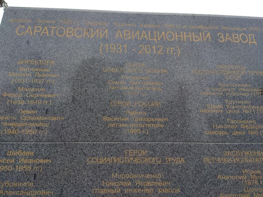 В Заводском районе Саратова накануне 75-летия празднования Великой Победы памятник Авиационному заводу и погибшим в Великую Отечественную войну его работникам находится в плачевном состоянии. Об этом «Четвертой Власти» рассказал читатель по имени Алексей.