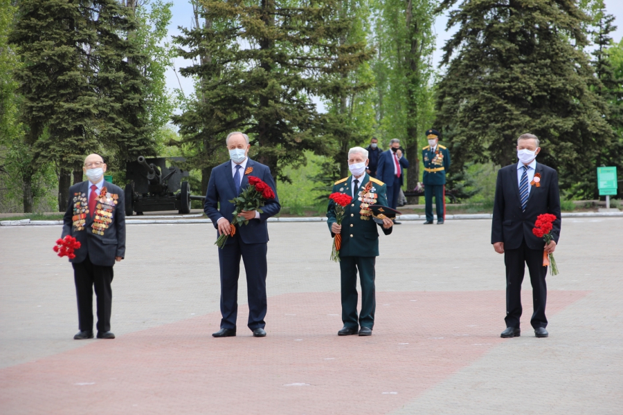 Валерий Радаев, посетив парк Победы возложил цветы к трем воинским монументам: вечному огню, колоколу и новому памятнику воину-освободителю. Отметим, что официальное открытие памятника еще не состоялось, его перенесли в свете пандемии коронавируса.