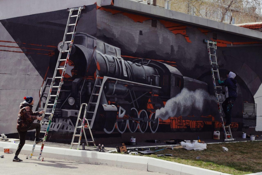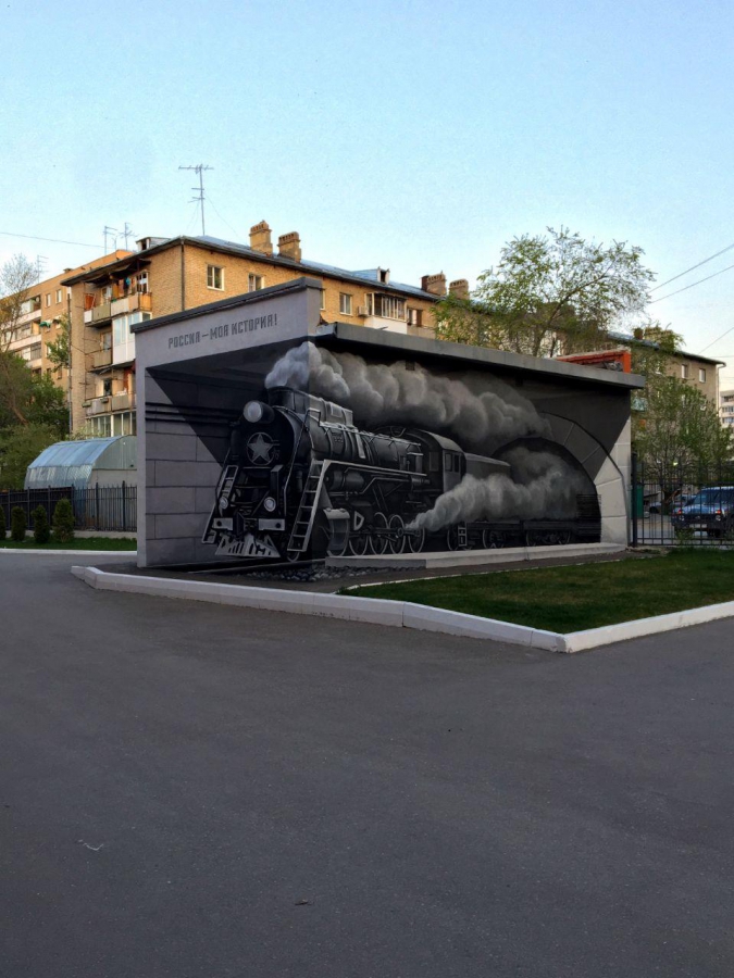 «Поезд Победы», выполненный в технике 3D, теперь украшает территорию парка «Россия — Моя история». Реализовали творческую задумку художники Олег Зябкин и Владислав Гранит (граффити-мастерская Skills).