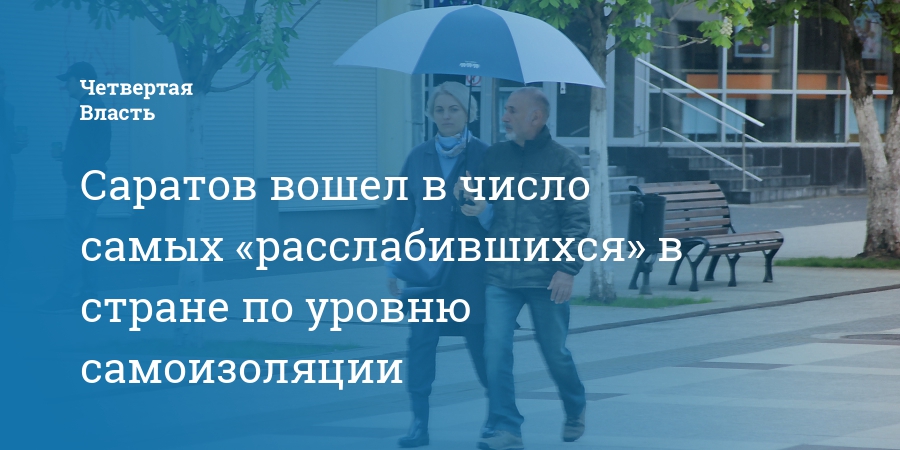Саратов оказался в числе городов России, где жители больше всего «расслабились» в условиях режима самоизоляции, объявленного из-за пандемии коронавируса. Как показало исследование «Центра политической конъюнктуры», по падению индекса самоизоляции от «Яндекса» Саратов стал 4-м среди городов с численностью от 500 тысяч до 1 млн человек.
