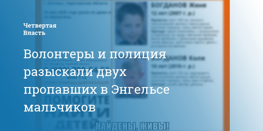 Пост об исчезновении братьев Богдановых – 10-летнего Коли и 12-летнего Жени – появился в группе поисковиков в соцсетях вчера, 18 мая. В розыске участвовали волонтеры и полиция. Уточнялось, что ребята самовольно ушли из дома, их видели в разных местах районного центра.