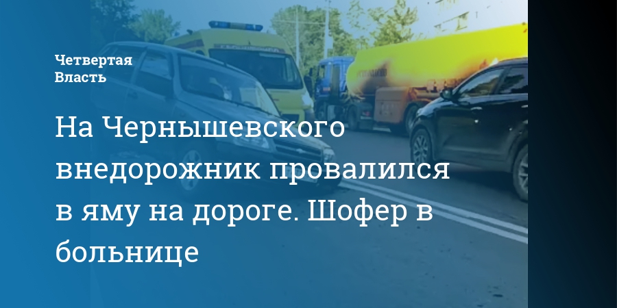 На Чернышевского внедорожник провалился в яму на дороге. Шофер в больнице