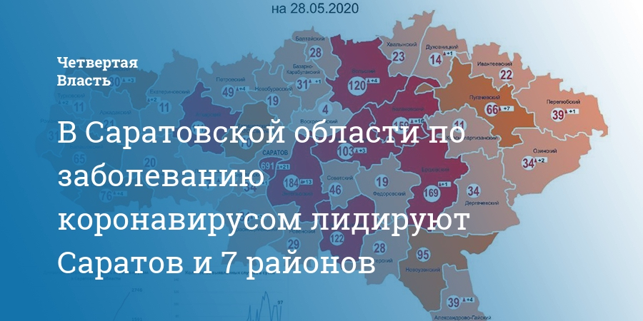Число лабораторно подтвержденных случаев коронавируса с начала пандемии распределяется по муниципалитетам следующим образом: Саратов - 691 случай; от 100 до 200 случаев - Энгельсский, Ершовский, Балаковский, Краснокутский, Вольский, Аткарский, Марксовский районы.